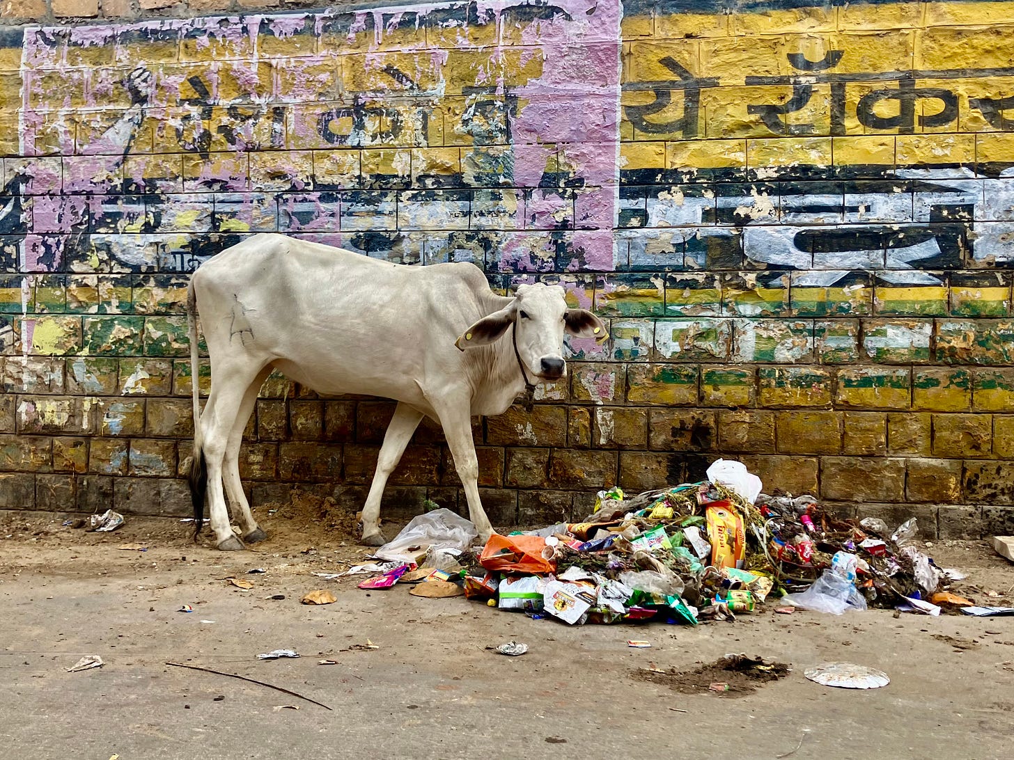 Everyone knows that cows are sacred in Hinduism. But being sacred does not always seem like it’s good for them. In fact, the way cows are treated here makes me almost want to abandon my Kantianism and become a utilitarian. The governing principle is ahimsa, non-violence, non-interference, which is not the same as ensuring the best possible outcome. So when a cow stops giving milk, instead of slaughtering it the farmer simply lets it wander free. A lot of these cows wander into cities, where people practice ahimsa by letting the sacred cattle eat from piles of stinking garbage on the ground. Cattle with their nuzzles in dumpsters, sweet tottering calves browsing through the filth. Instead of grass, these cows seem to subsist on paper. I’ve seen them munch down on coffee cups and newspapers and fliers. One cow that had found a trove of discarded books and was systematically eating its way through them all. Eating Shantaram. Eating Atomic Habits. The ribs show through the skin, but the bellies are tight and swollen. Their entire back quarters are splattered with their own liquid, diseased splatterings. It’s genuinely horrible to see. I try to remember that my own society does terrible things to these animals too, much worse than anything in India, but back home the torture and death takes place behind closed doors where nobody can see. But this is not exactly a comforting thought.