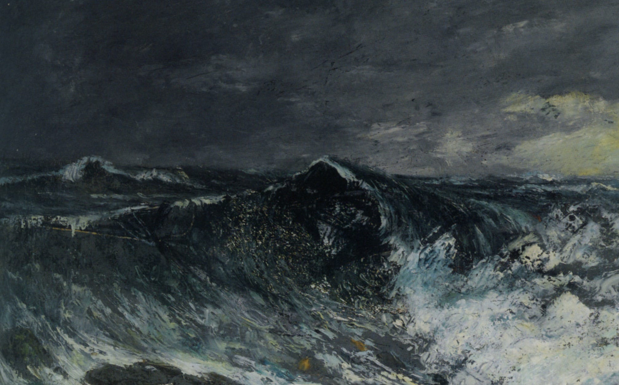 Obviously tastes differ, but I would suggest that this is not, in fact, any kind of bad writing at all. It’s dense and utterly obscure, and very possibly doesn’t mean anything at all, but it’s magnificent. The slow cadence of all those monstrous words, rolling and roiling in the wide murky thickness of their sentence. I’ve reread this passage several times, and every time it generates a sudden mental image of whales, huge humpback whales on a black moonless night, glittered with barnacles, wheeling their great ungainly heads just beneath the frothy surface of a white-webbed sea.